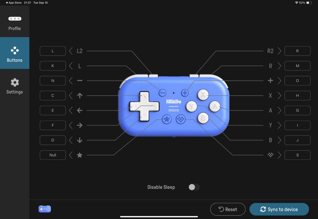 キーボードモードでキー割当を設定するためには、Ultimate Softwareというアプリを使います。なお、このアプリの対応プラットフォームはAndroidとiOSのみとなっています。Windowsには対応していないので注意が必要です。なお、iOS版はMacから使うことはできます。また、Mac側からはBluetoothキーボードとして認識されているので、一度Ultimate Softwareでキー割当を設定してしまえばMacだけでなく、Parallels Desktop上で動作するWindowsでもコントローラーを使うことができました。