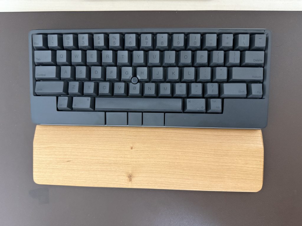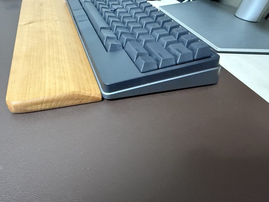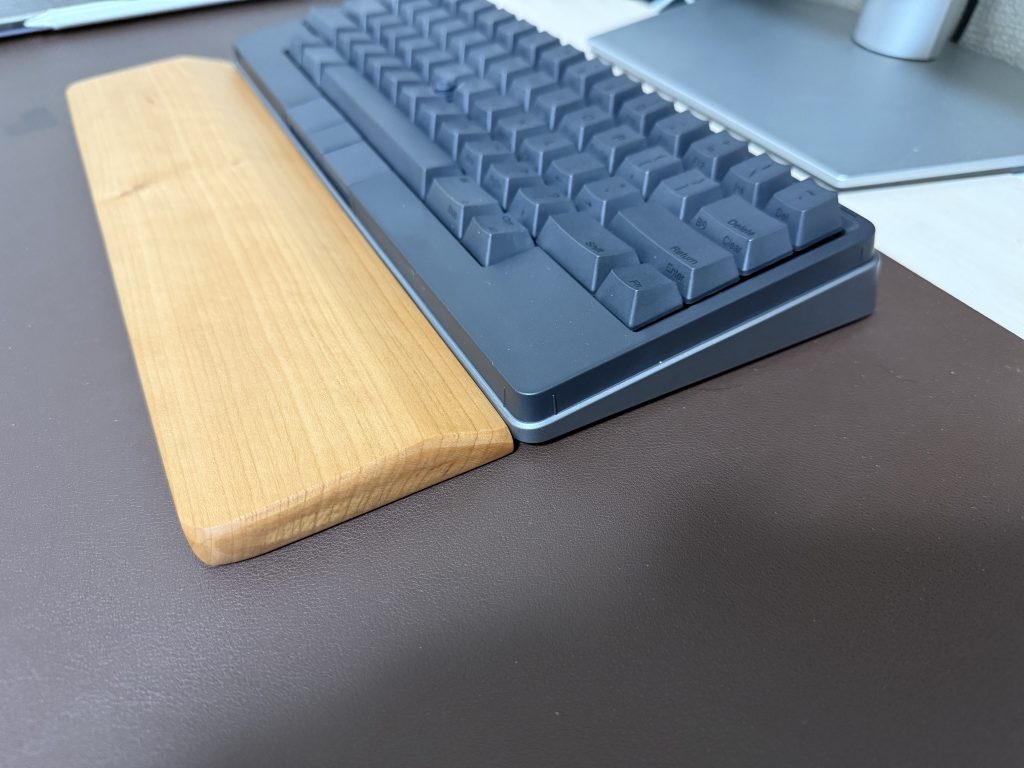 実は、同時期にHHKB Hybridも購入しており、そのとき一緒に買ったFaluberの木製リストレスト (S-300)をHHKB Studioにも使ってみました。ただ、このパームレストはキーボードと接する面が高く、HHKB Studioの特徴であるクリックボタンが押しづらくなってしまったため、専用品を探すことにしました。