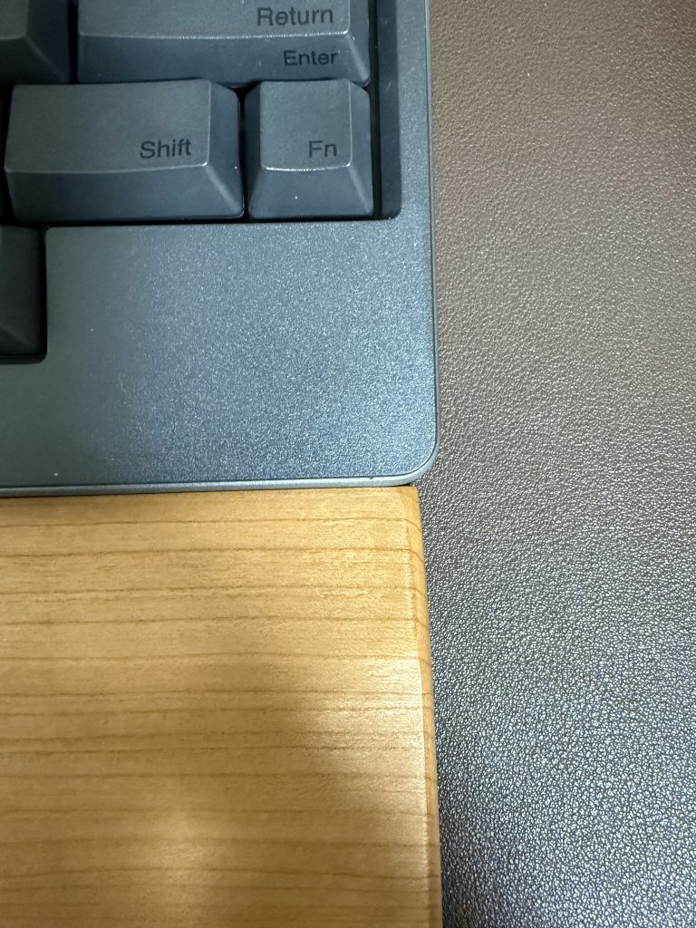 前述のように角にはヤスリがけが甘い部分がありましたが、手で触る部分にはケバやササクレはなく、タイピング中に手のひらがすれても問題ありません。